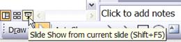 Run From current slide Click Slide Show icon at bottom right of screen (Press Shift+F5)